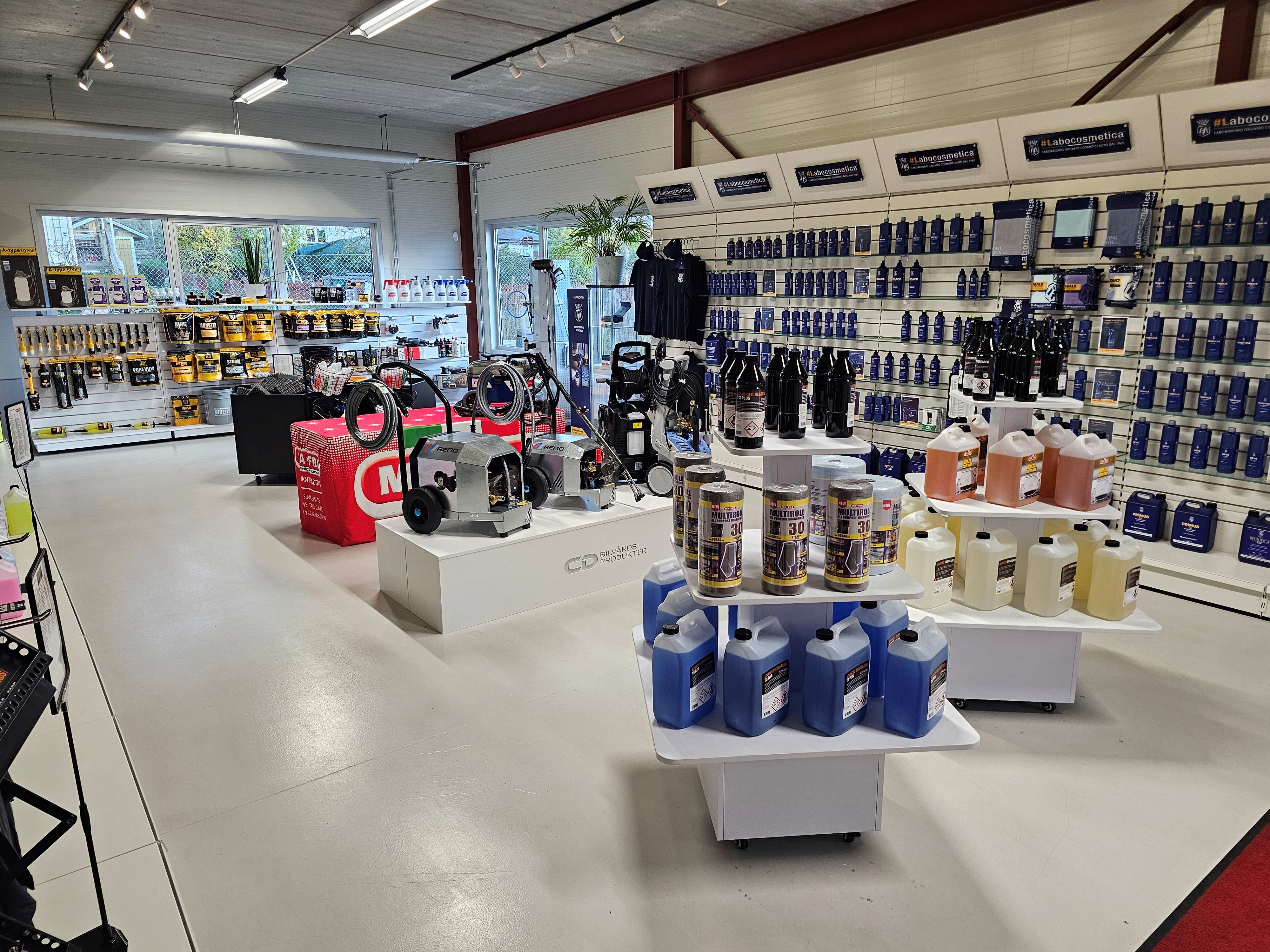 Idag är vi ett väletablerat företag inom fordonseftermarknaden. Vi har agenturen i Sverige för Mafra, Labocosmetica och Work Stuff. Förutom ett fullsortiment av exklusiva bilvårdsprodukter för proffs & konsument så har vi även ett komplett sortiment av utrustning för bilrekondare, biltvättar och åkerier. Högtryckstvättar, skensystem, dammsugare, lansar, kem- och högtrycksslangar etc. Kontakta oss gärna om du vill veta mer om detta sortimentet.