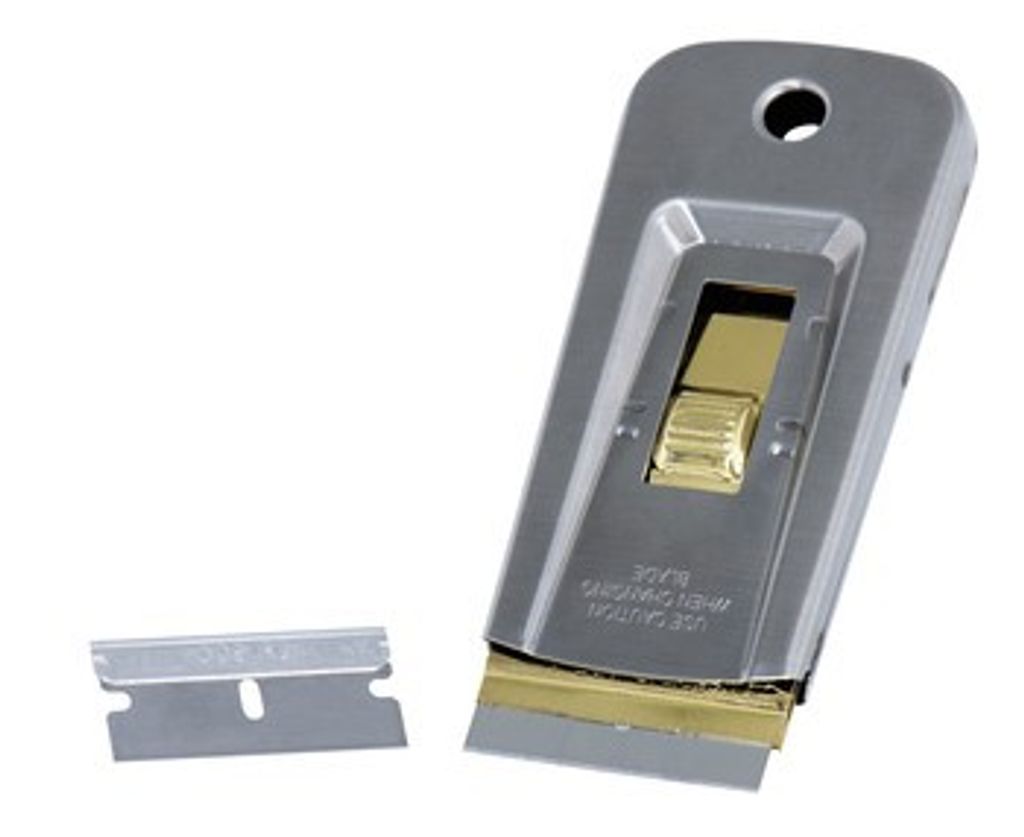 Klickskrapa för borttagning av spraydimma, klister, dekaler mm från bilrutor.