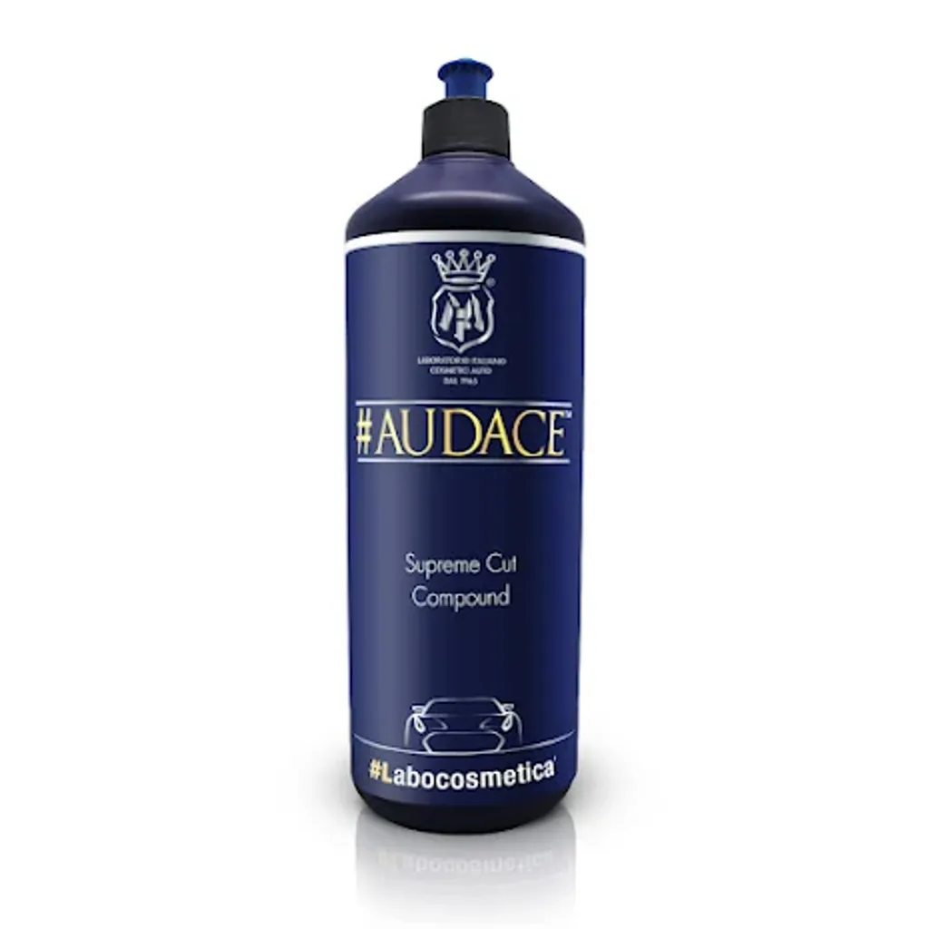 Labocosmetica Audace är en vattenbaserad produkt med mycket stark repavverkning redan på låga varvtal. Detta är möjligt tack vare en blandning av nyaste generationens slipmedel som fungerar med både roterande och oscillerande maskin och kan göra polerprocessen betydligt snabbare än med traditionella grova polermedel.