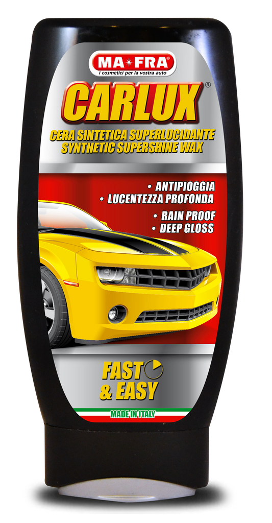 Carlux innehåller en blandning av vaxer som är enkla och smidiga att jobba med och som snabbt ger ett riktigt fint resultat. Den skapar en silkeslen yta på lacken som effektivt stöter ifrån sig smuts och vatten.