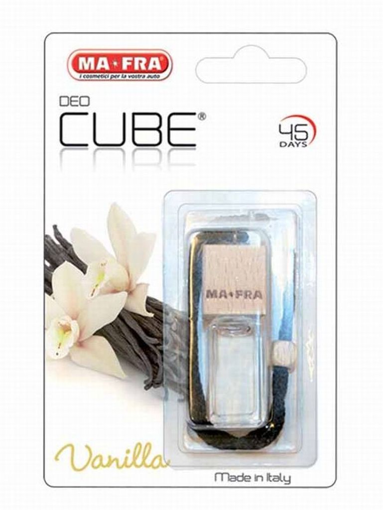 Deo Cube är en serie bilparfymer med lite annorlunda design. En liten glaskub och ett trälock. Genom att skruva locket bestämmer man styrkan på doften. Parfymen absorberas upp i träet och avger en jämn ström av parfym.