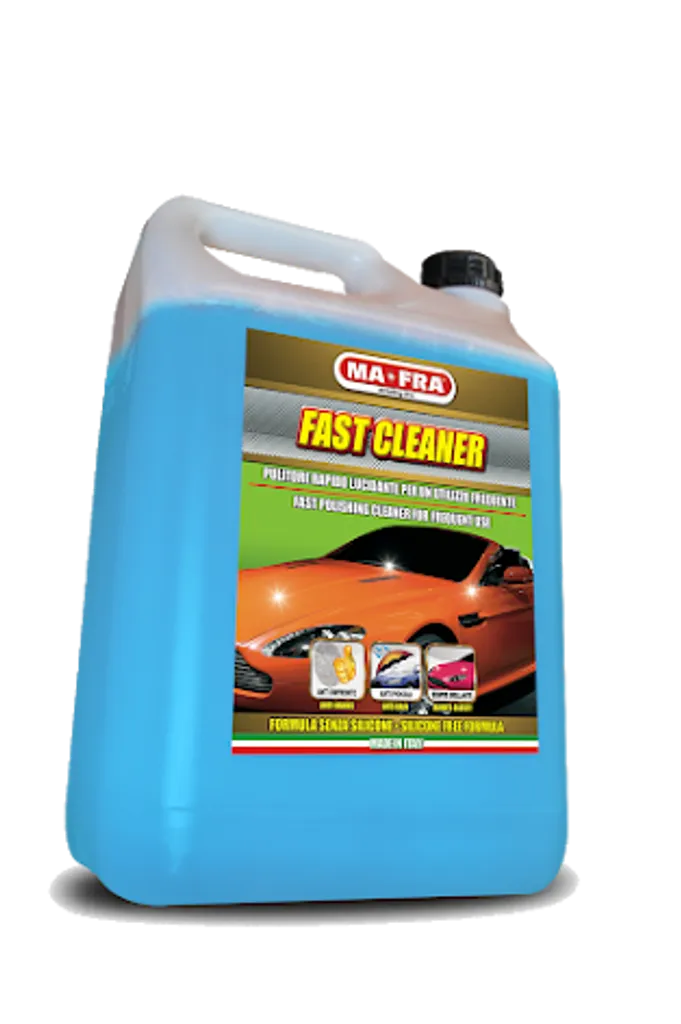 Behåll din bil ren och blank med snabbvax, på ett säkert sätt. Denna produkt är en dröm för alla bilägare som älskar sin bil. Den speciella formulan utvecklad av MA-FRA:s utvecklingsavdelning, med syntetiska vaxer, blir nu denna dröm sann. FAST CLEANER kan faktiskt användas varje dag för att ta bort spår av fågelspillning, insekter, och färsk smuts, likväl som spår av ovarsam tvättning, rester av schampo etc. Tack vare sin vinnande silikonfria formula håller FAST CLEANER din bil fri från damm, fingeravtryck och ser till att lacken håller sig blank, fin och hjälper vaxskyddet att hålla sig längre. Produkten har även en vattenavvisande effekt, vilket gör att lacken och glasytor, ja hela bilens kaross, stöter ifrån sig vatten, vilket gör bilfärden säkrare. Använd FAST CLEANER så ofta du vill. Håll din bil ren och blank och fin på ett fantastiskt lätt sätt.