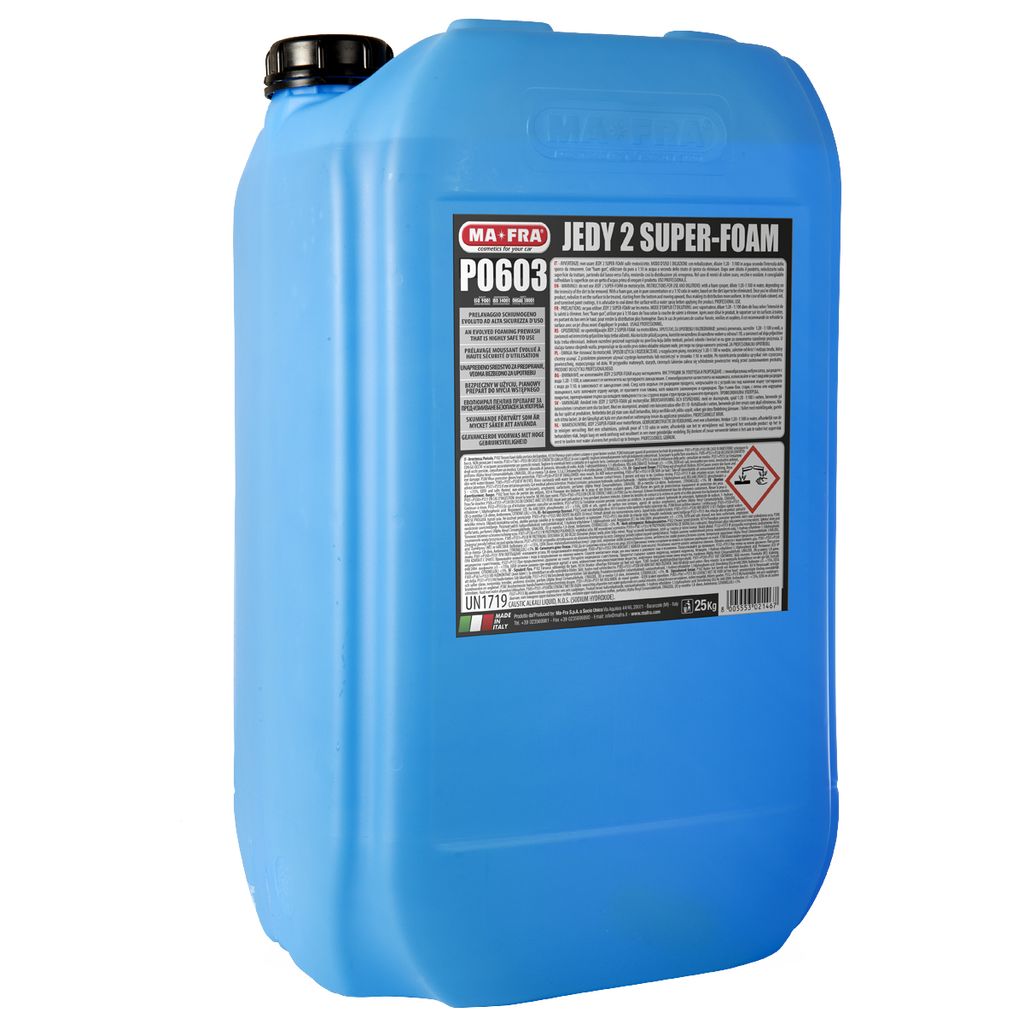Ett av marknadens absolut bästa skummande alkaliska förtvättmedel både för bil, lastbil och entreprenadfordon. Skummar mycket, kraftfull och rengör väldigt effektivt, doftar härligt och är samtidigt säker på alla olika material som kan finnas på bilar och lastbilar. Tack vare att den torkar långsamt och klarar lite högre temperaturer så passar den extra bra till lastbilar och andra stora fordon där medlet får ligga på och verka lite längre. Men självklart fungerar den lika bra även till vanliga bilar. Löser trafikfilm, insekter, fågelspillning, dieselrinningar och allmän organisk smuts. Mycket koncenterad och ekonomisk i brukslösning, cirka 2kr/L. I den här produkten har Mafra hittat den perfekta balansen mellan tvättstyrka, säkerhet och användarvänlighet. 80% av våra företagskunder använder sig av denna produkten, 100% är mycket nöjda!