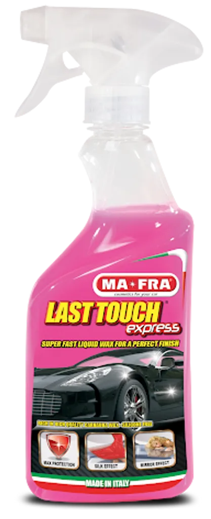 Anti-fingeravtryck - Spegel effekt - Maximalt Skydd. Används flitigt på bilutställningar. Inom loppet av bara några minuter och med minimalt arbete ger LAST TOUCH EXPRESS en exeptionell kombination av djuprengöring, skydd och glans, även när det regnar. En innovativ silikonfri formula rik på vax från Carnauba trädet. Den tar bort spår av fingeravtryck, allmän smuts, fågelspillning, spår av insekter etc. LAST TOUCH EXPRESS får din bil att se ut som om den var ny.