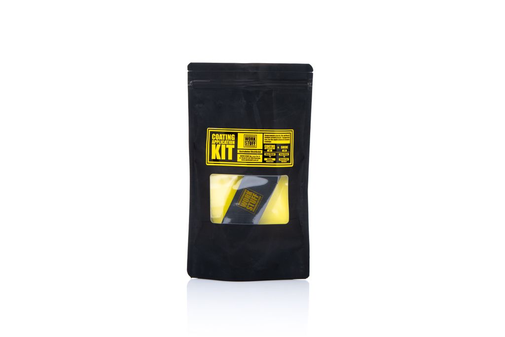 Kit med applikatorklossar och mockadukar till applicering av keramiska lackskydd. Klossarna kommer med en smart liten skärning längs sidan där du kan trycka in mockaduken så den håller sig på plats.